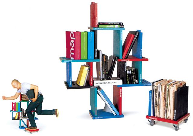책장을 조립하는 데 볼트, 못, 풀 따위는 필요 없다. 오로지 크기가 다른 '책처럼 생긴 목재'만 있으면 된다. 리투아니아 출신 디자이너 안드리우스 포시우스Andrius Pocius는 자신의 책장에 대해, "필요에 의해서나 분위기에 따라 책 더미를 손쉽게 새로이 쌓을 수 있도록 한 것이 '책 더미'의 콘셉트다"라고 설명한다.